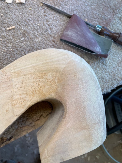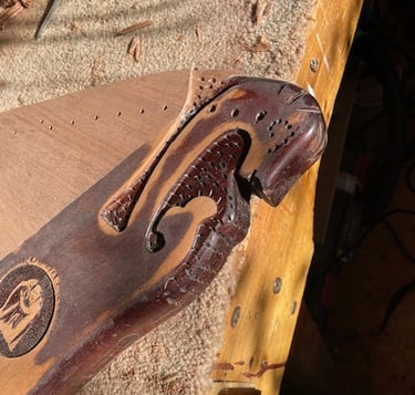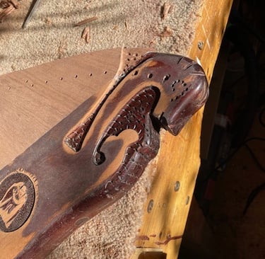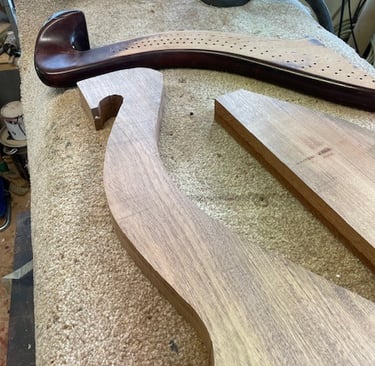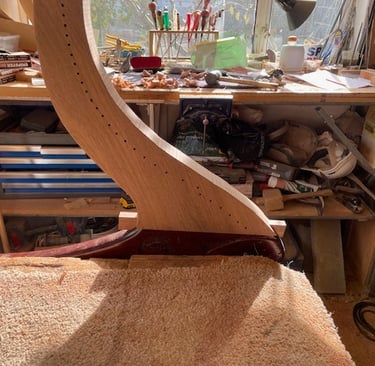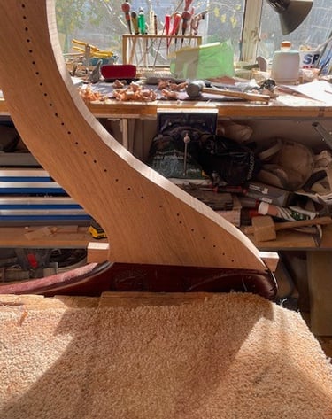 I like to carve the neck of the harp, where it rests against the player's shoulder. It takes time, but time is something I invest in my harps. The soft curves echo the flow of the harmonic curve,
