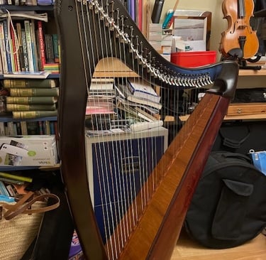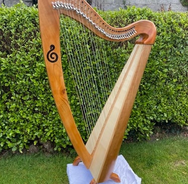 At Eala Harps, I create exquisite one-off Irish lever harps using the finest materials, designed for both traditional and concert harp players. Every aspect of the harp's construction is geared towards creating an instrument with its own particular voice. No detail is spared, from the seasoned 'moon spruce' of the soundboard to the 6500 year old native bog oak of my logo.
