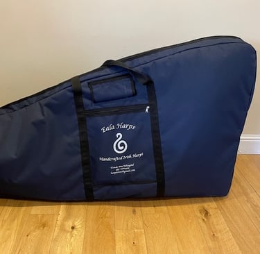 All harps come with their own custom made carrying case and hood. Included is a full set of strings, a tuning key and a string chart.